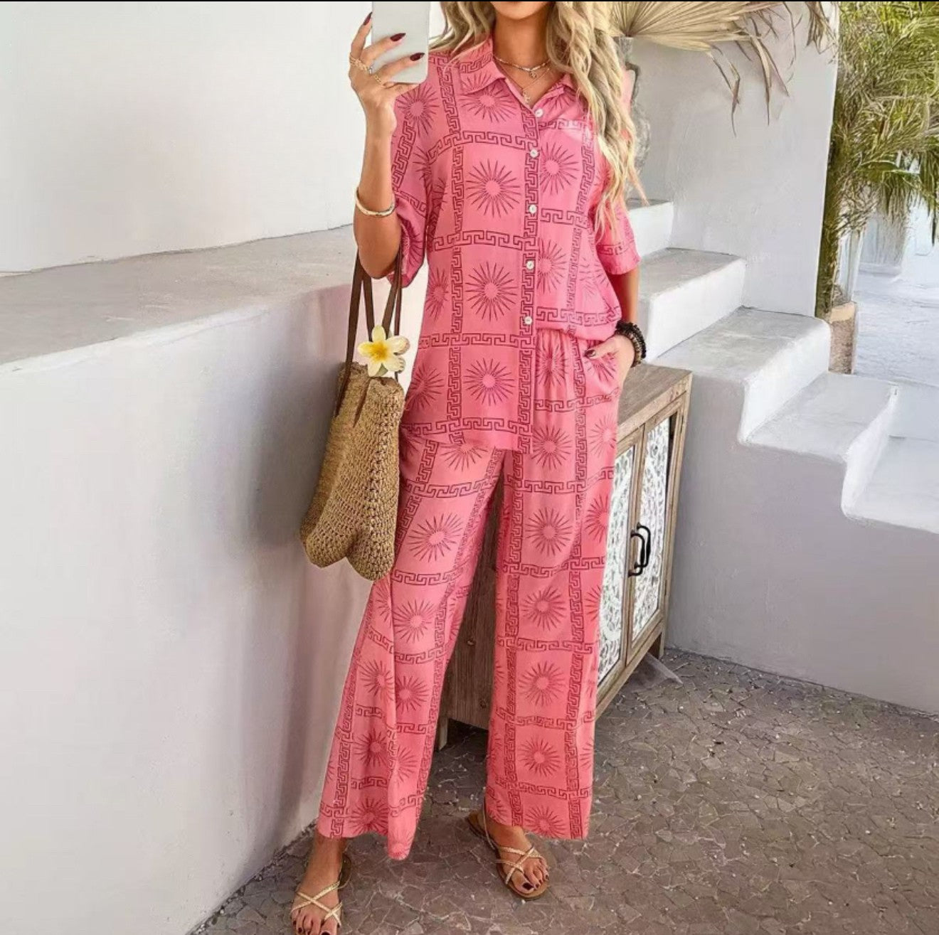 This chic women’s set is designed for warm-weather days, combining a breezy top with perfectly matched bottoms for a coordinated summer look. Crafted from lightweight, breathable fabric, it offers comfort without compromising on style. Perfect for casual outings, vacations, or relaxed evenings.